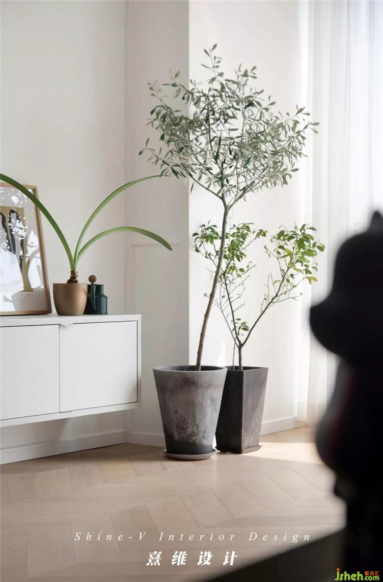 ▲留白的電視背景墻,懸空的簡(jiǎn)約電視柜,都被植物裝點(diǎn)。屋內(nèi)細(xì)節(jié)處處都被不同的植物穿插點(diǎn)綴,與家具物品不同的舒展形態(tài),是讓人可以感受四季與生命力的存在,于是家中的景更鮮活起來(lái)。