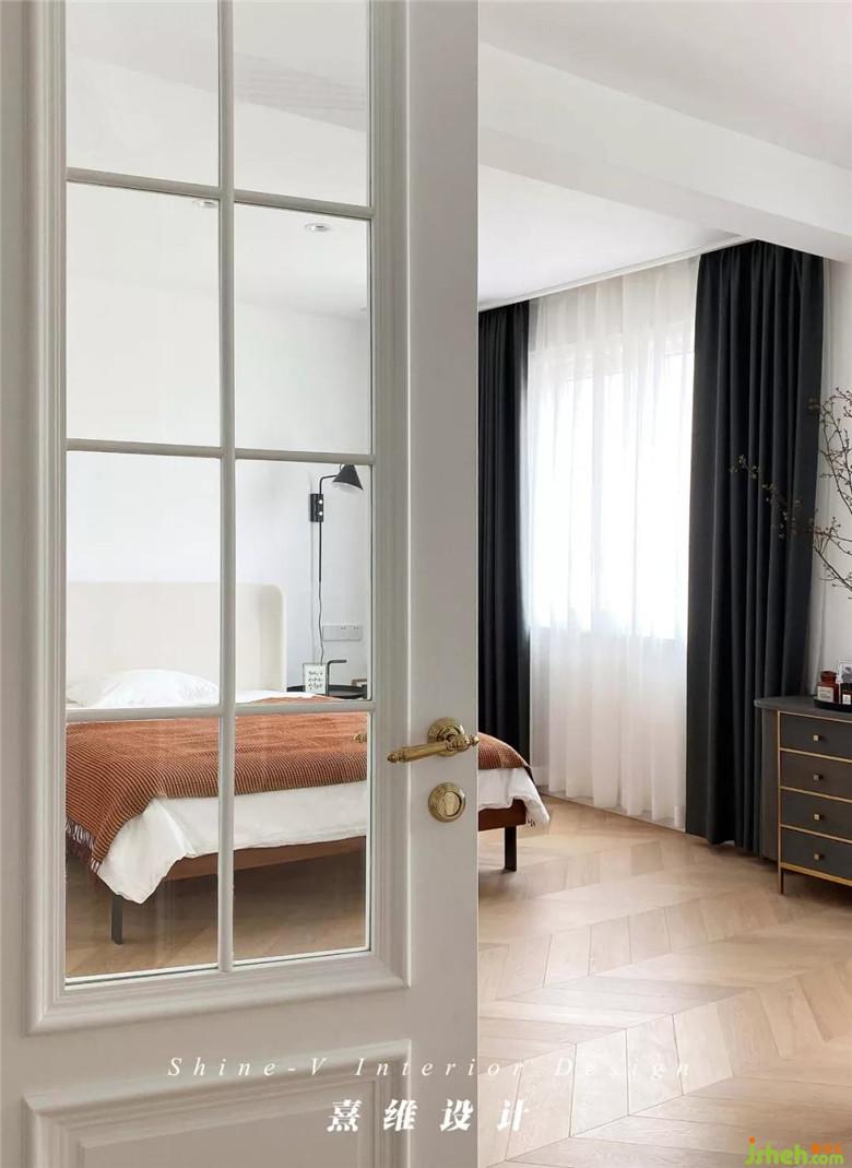 ▲兩間臥室合并呈現(xiàn)的大臥室空間,獨(dú)居生活便可以無(wú)需顧忌的選擇通透的玻璃門,充滿儀式感的雙開(kāi)玻璃門不會(huì)阻隔臥室兩扇窗戶帶來(lái)的充足光線,看起來(lái)更是格外的風(fēng)情無(wú)邊。這樣的一間臥室增添的儀式感,仿佛能夠暗示自己已做足準(zhǔn)備,可以全身心擁抱生活。