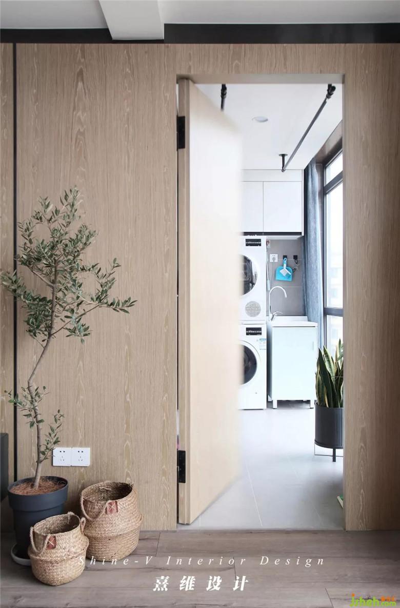 ▲木飾面綿延至陽(yáng)臺(tái)處,以隱形門(mén)將陽(yáng)臺(tái)分割為生活陽(yáng)臺(tái)與休閑陽(yáng)臺(tái)。