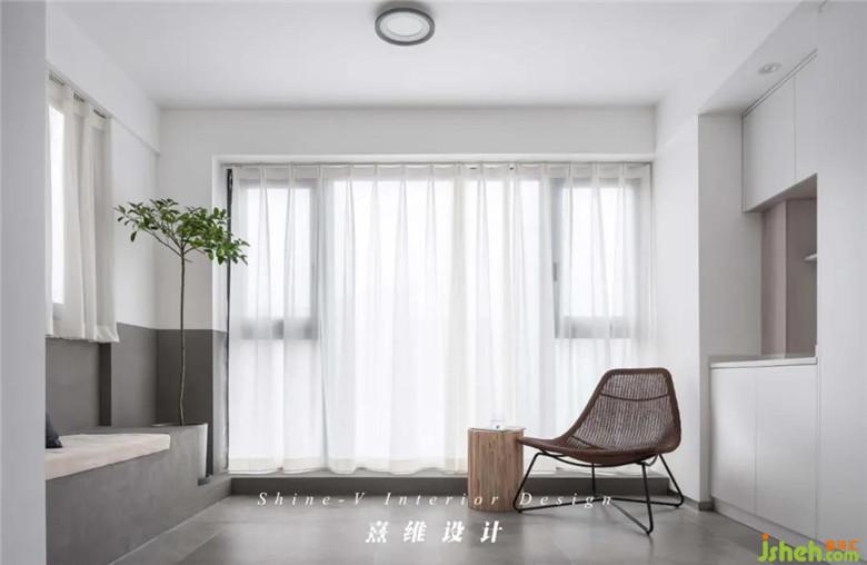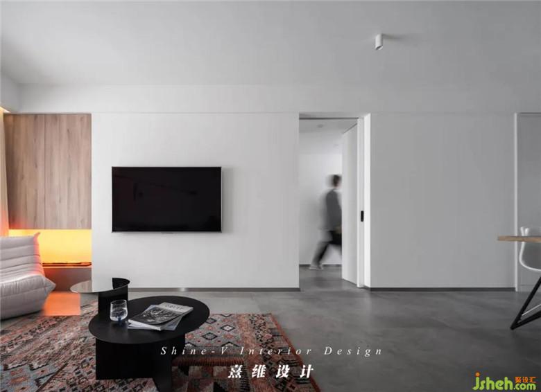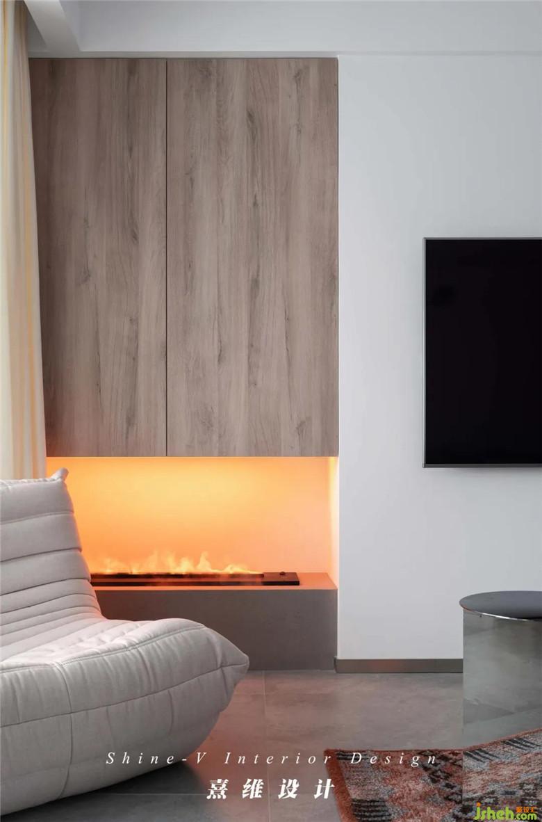▲裝修公司將美觀和實(shí)用以最簡約、流暢的方式在電視背景墻處表達(dá)出來。配合色彩純凈的調(diào)性,無需額外添置電視柜,用淺胡桃木色的柜體以吊柜的形式放置在左上角,客廳需收納的物品被斂于其中,以自然、素樸的一塊木色縮影摒除白色的單調(diào)印象,底部安裝的霧化壁爐,火光裊裊。此時(shí),形形色色、個(gè)中滋味盡可消融于白之中。