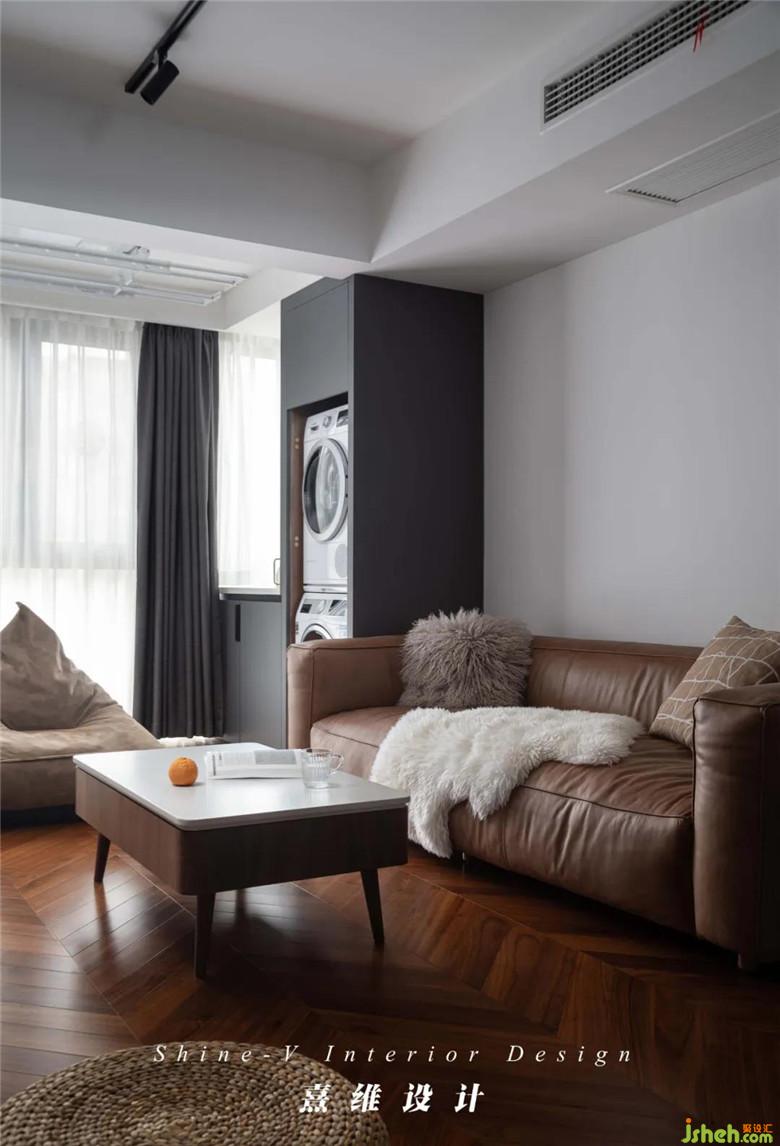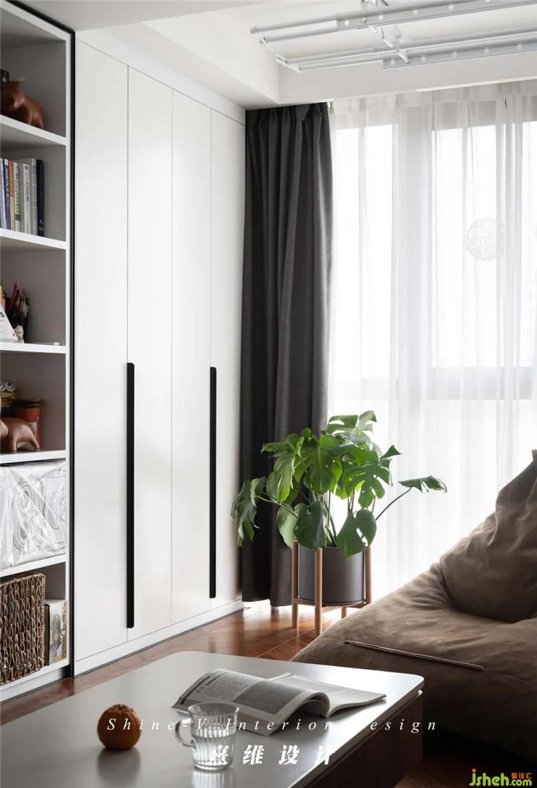▲電視背景墻的白色繼續(xù)延伸,至陽臺一側(cè),成為可以囊括雜物的封閉收納空間,由琳瑯滿目升騰成統(tǒng)一的白,裝修公司以內(nèi)置最大限度的減少雜亂,萬千思緒被修整輕盈。