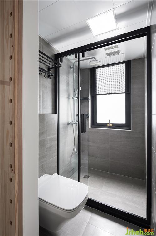 ▲走道空間的調(diào)整,導致衛(wèi)生間的長度被壓縮。裝修設(shè)計墻排馬桶盡量釋放出寬松的環(huán)境,用心簡潔,減輕被壓縮的空間體量感。