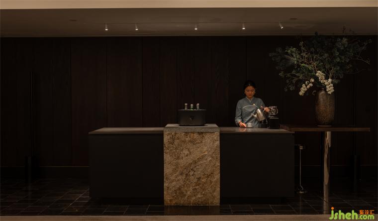 無論東西還是南北,均是由地理屬性的區(qū)別而逐漸流向文化差異,晟永興在上海注定要反復(fù)在“交融”上下功夫。餐廳設(shè)計(jì)將餐廳入口改至東南角后,從大廈進(jìn)入需沿甬道進(jìn)入繞行“晟永興”透光云石屏風(fēng),曲徑通幽再至眼前豁然,空間與自然忽而涌現(xiàn)。
