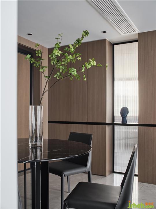 本案兩開間朝南,客廳東西朝向,原有空間布局做了重新調整。揚州家居設計將入口處廚房門方向調至東側進入,增加進門鞋柜的收納,并通過長虹玻璃為餐廳引進自然光。原主臥室衣帽間改為敞開式書房,利用客廳懸空柜設計,提高整個空間的收納,同時將書房采光引進客廳和走道,讓整個客廳視線達到延伸和穿透效果。主臥衣帽間變?yōu)闀亢?,取消原兒子房衛(wèi)生間的空間,并改變門的方向,為主臥室重新劃分衣帽間區(qū)域,平衡之后的功能與連貫的動線,讓臥室空間更加自然流暢。