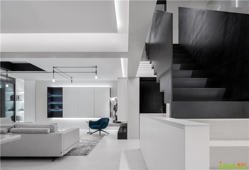 入戶的另一條動線圍繞著客廳休息區(qū)展開。