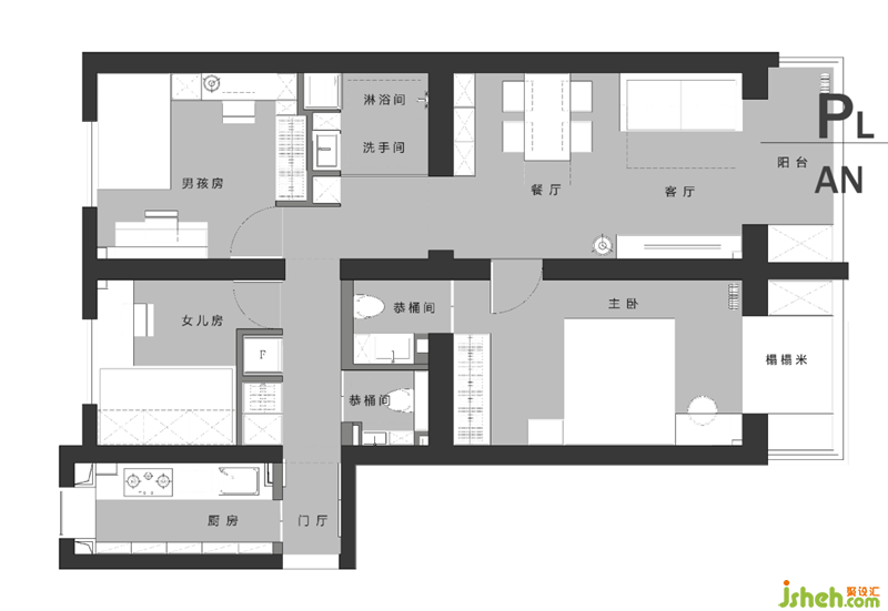 原始布局的男孩房門正對玄關(guān),考慮到成年后孩子的隱私空間和洗手間布局,恒田家設(shè)計師巧妙地利用了部分原來男孩房的空間將其作為淋浴間和洗手間,北京裝修設(shè)計同時將男孩房的房門改為正對陽臺一側(cè),房門打開時可以和陽臺形成室內(nèi)空氣對流,可謂是一舉兩得。