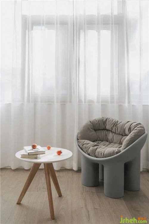 陽臺的采光非常好,因此選用了透光紗簾引入自然光,提亮了整個空間。擺放的低矮桌椅正好可以在這里享受愜意的下午茶時光,享受被陽光沐浴的感覺。