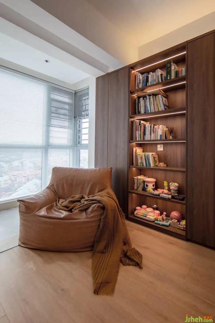 百葉簾可以根據(jù)需求調(diào)整光線,一家人可以一起曬太陽、看繪本,大人也能一邊做自己事情一邊照看小朋友玩耍。