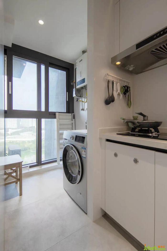生活陽臺位于廚房內(nèi)側(cè),除了滿足基礎(chǔ)的洗衣和晾曬之外,家用梯等大型物品也可收納在這里。