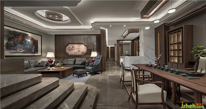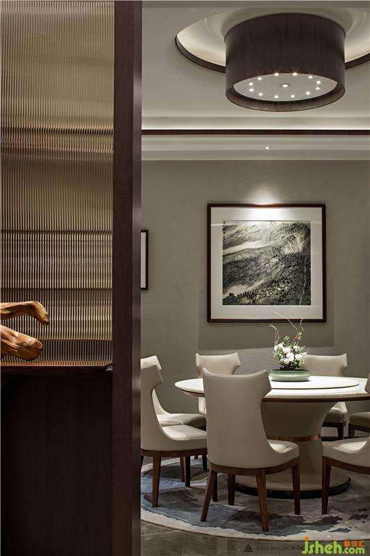 萃取傳統(tǒng)文化精髓,傳承自然美學(xué)風(fēng)范,以文化符號與山水為魂,藏巧于拙,于內(nèi)斂含蓄中詮釋凡俗化意境里所獨(dú)缺的高雅與秀美,讓人置身于丹青水墨之中。立足于當(dāng)下,以人為尺度,摒棄雍容繁復(fù)的裝飾,將新中式元素與現(xiàn)代材質(zhì)巧妙柔和,素雅與靈動(dòng)兼得,形成了一個(gè)氣定神閑、富于文化氛圍和精神歸屬感的當(dāng)代人居空間。