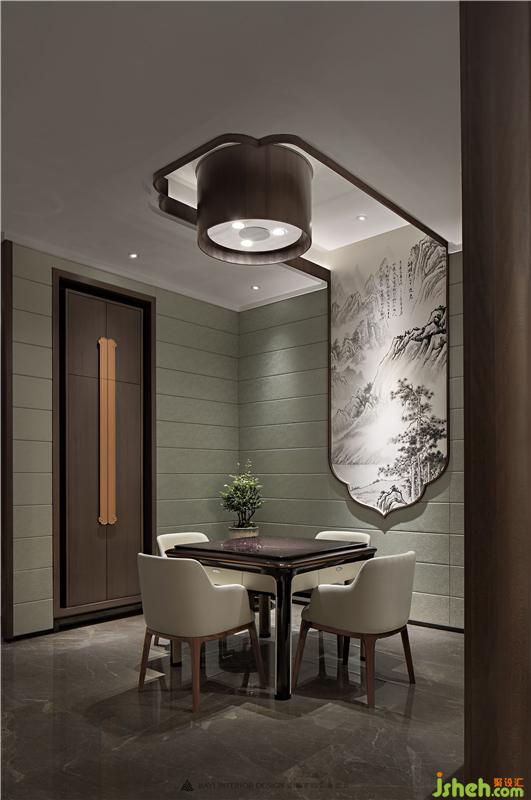 棋牌只是物趣,終究渴求的是超然物外的生活態(tài)度,悅一方天地閑適之真性情。借景東方,玩物適情,以輕逸自然的藝術(shù)手筆再生妙趣,有古風(fēng)而不迂腐,有新韻而不輕浮。山水畫自天穹徐徐落下,猶如凌空展開一幅奇美畫卷,歡愉之間,將儒雅之士閑心享春秋的情致推到極致。