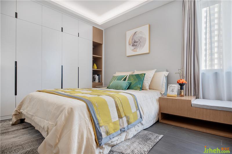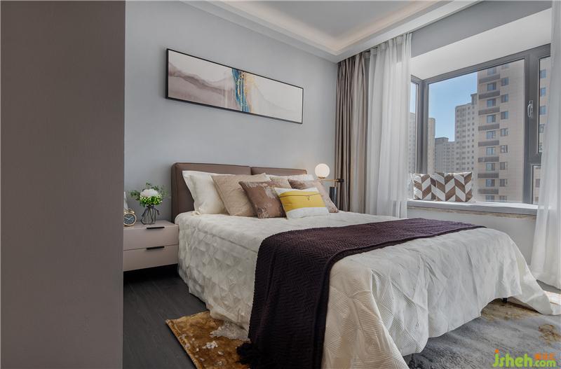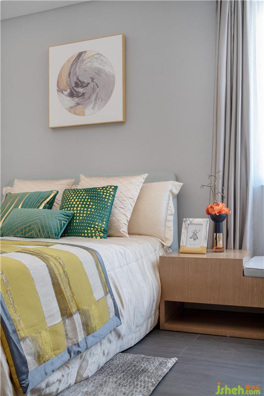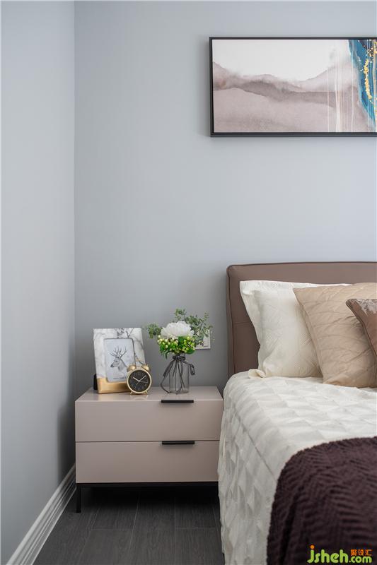 客臥的飄窗搭配雙簾,自然光線流入房間,時(shí)而開放時(shí)而隱秘;精美床品,腳邊花毯,整體氛圍令人見之心生柔軟。以居者為上,還原舒適本真,便是精致之作。