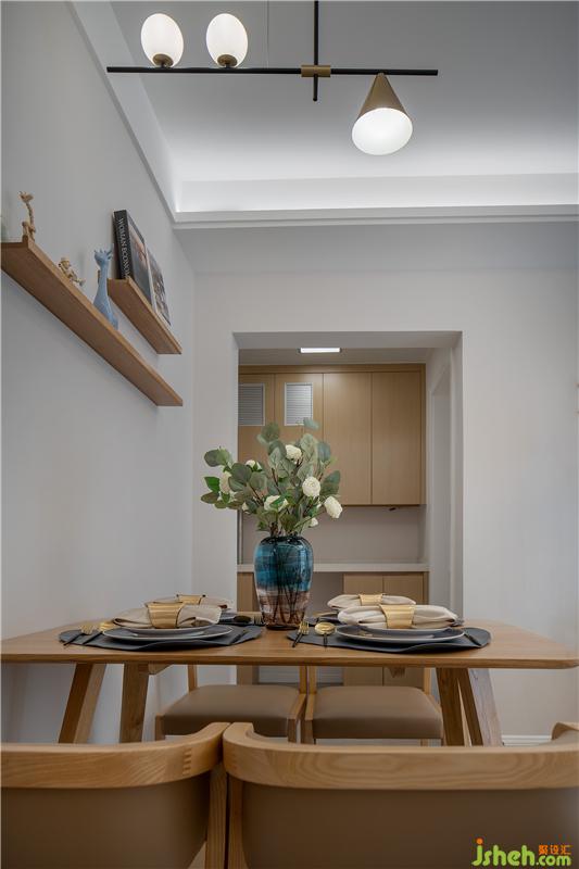 簡約的餐廳搭配,在和馨的光影下溫暖喜人,原木色餐椅清新怡人,給灰白墻增添一排窗格擺上小小的飾品既沖淡了單調(diào)感,又有了藝術(shù)范,兩個人的安樂窩不用那么復(fù)雜。生活,就需要這樣的小確幸!