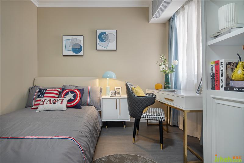 臥室布置淺色棉麻織物和乳白色系家具來制造舒適平和的觀感,燈飾與飾物搭配更顯簡潔輕致,整體呈現(xiàn)出一種舒適自然、安恬靜默的休憩氛圍,好似清泉流水,緩緩而歌,待亥子時刻,夜深人入定,山河夢間。