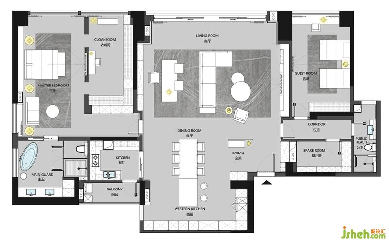 The design uses clear lines to divide the space reasonably. In the face of noisy urban life, a living space that can make the mind precipitate is a desire of the owners, and also the main idea embodied in the scheme. Therefore, the design of the fully open hall gives people a sense of transparency, avoids the pressure brought by vision, and can alleviate the tiredness of the owner's working day.