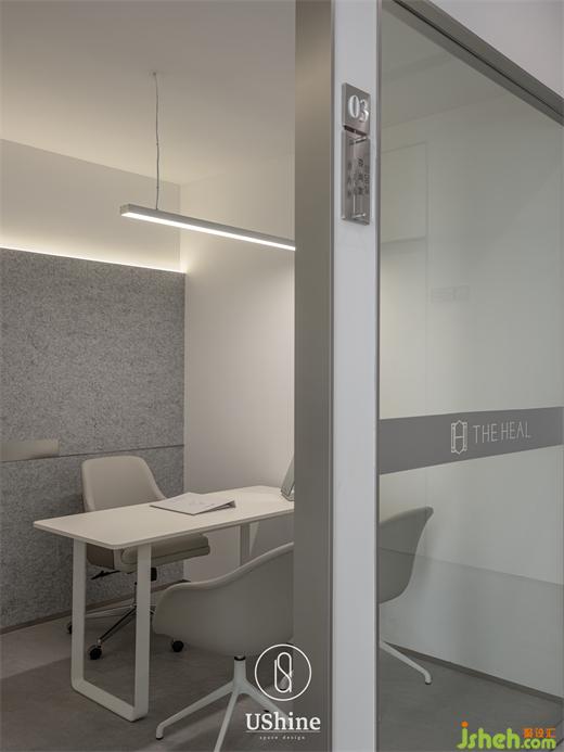 柔和的線條一脈相承,延伸到治療室和管理室,天花和墻面融合平順的弧度,深圳赫爾醫(yī)療美容診所裝修設計照明采用軟膜天花的散射光,或隱藏燈帶的漫反射光,利落的儲物柜和置物臺,在極簡中達致優(yōu)雅。