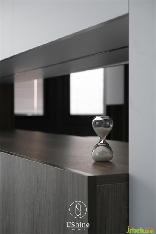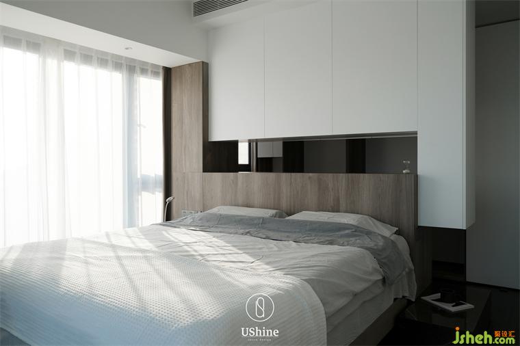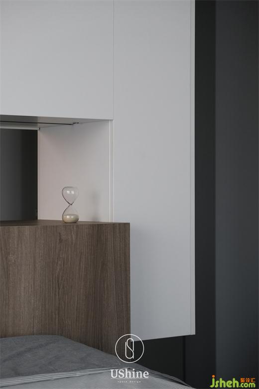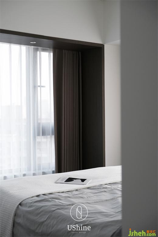睡眠區(qū)延續(xù)一貫的格調(diào)和質(zhì)感,精心挑選燈具和擺件,深圳海納公館家裝設(shè)計(jì)體現(xiàn)密斯?凡德羅提倡的“少即是多”。陽光從兩面落地窗灑入,斑駁的光影隨時間起舞,這樣的慵懶和美好,紳士怎能不愛?
