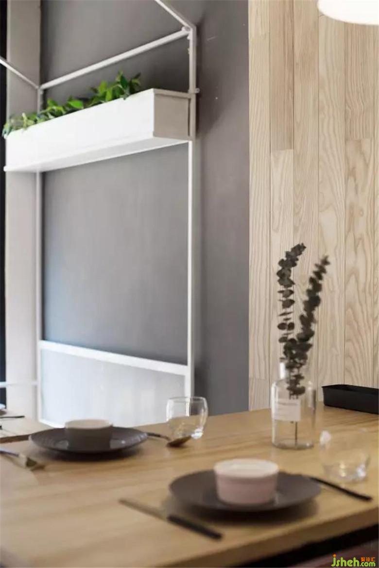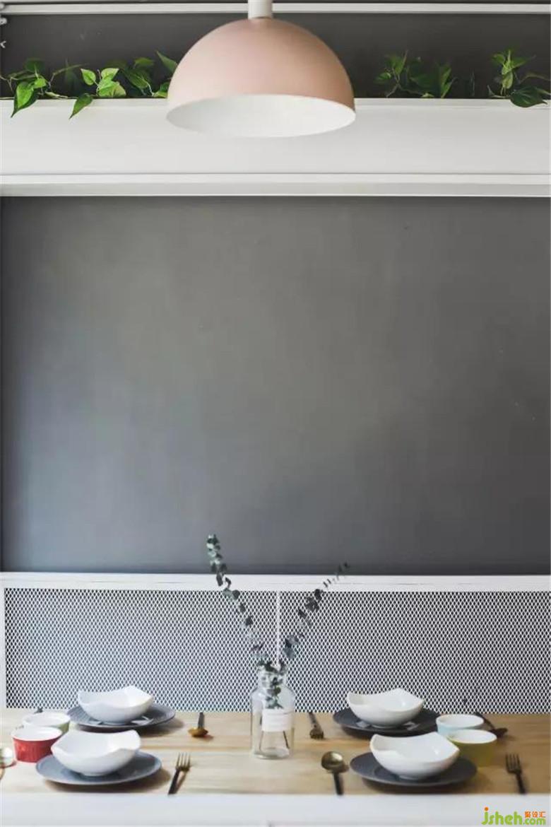 懸掛著的暖光小燈泡適當?shù)卦鎏砹丝臻g的通透性,也為這一角增添一份浪漫。餐廳設計