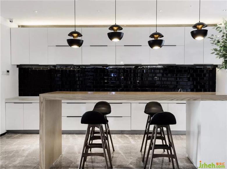 洽談區(qū)旁是白石子和泰山石鋪成的枯山水造景,同樣是現(xiàn)代風(fēng)格的家具與中式意境的結(jié)合,卻沒有一絲違和、突兀。