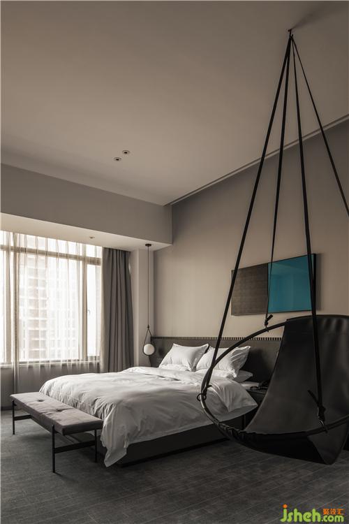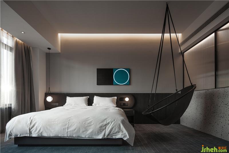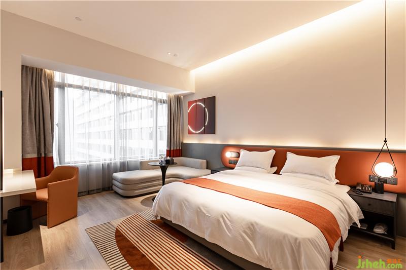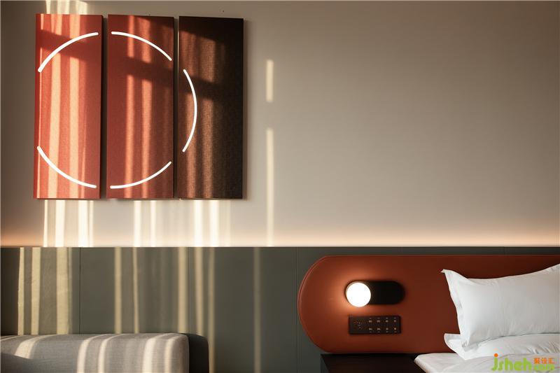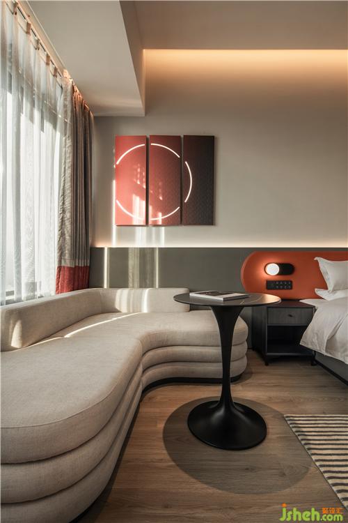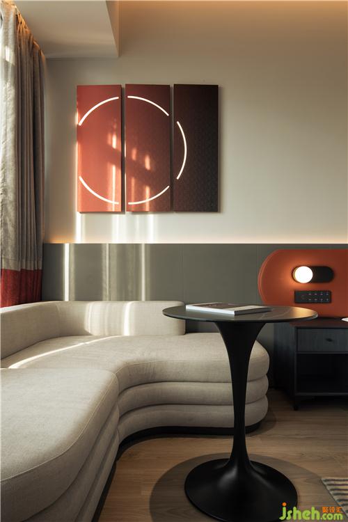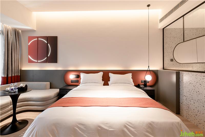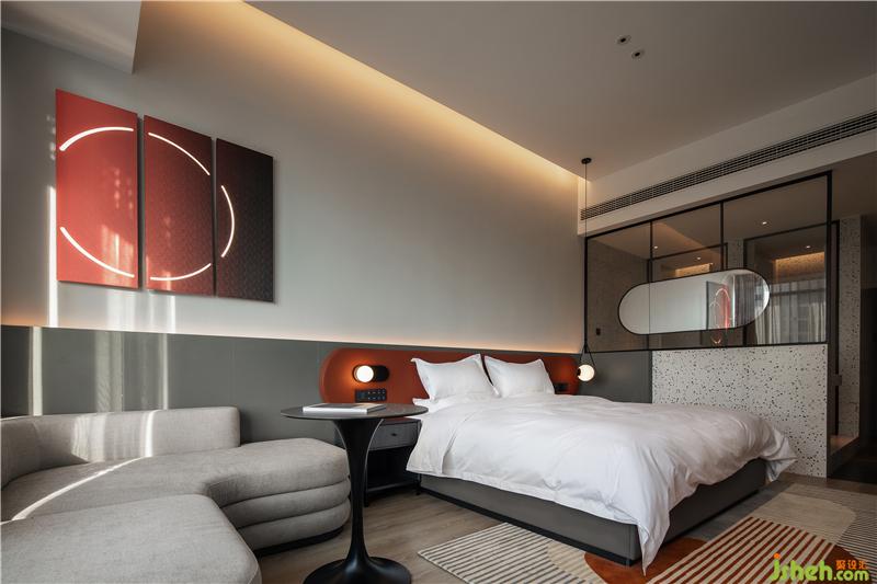 南昌酒店設(shè)計(jì)室內(nèi)以純粹的白色碰撞上濃烈的紅色的或灰度的綠色,