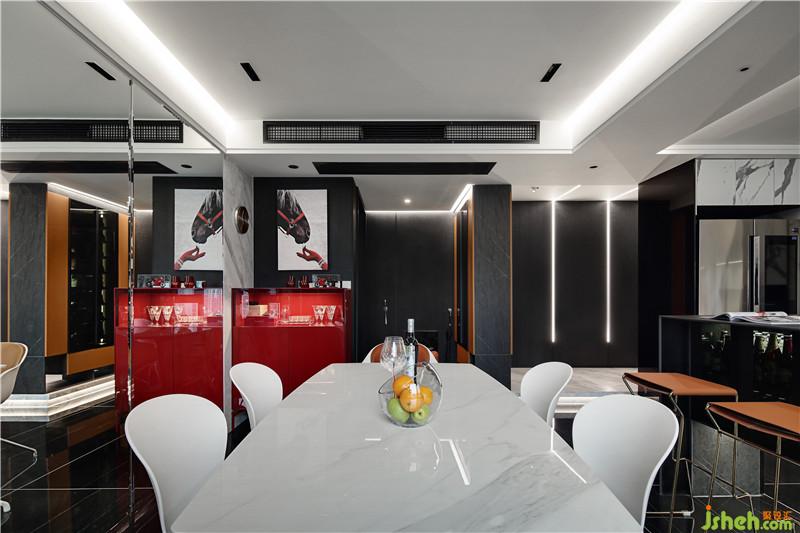 餐廳墻面鏡面的使用讓空間的視覺(jué)效果翻倍,在這樣的空間吃飯,人的心情都會(huì)豁然開(kāi)朗。