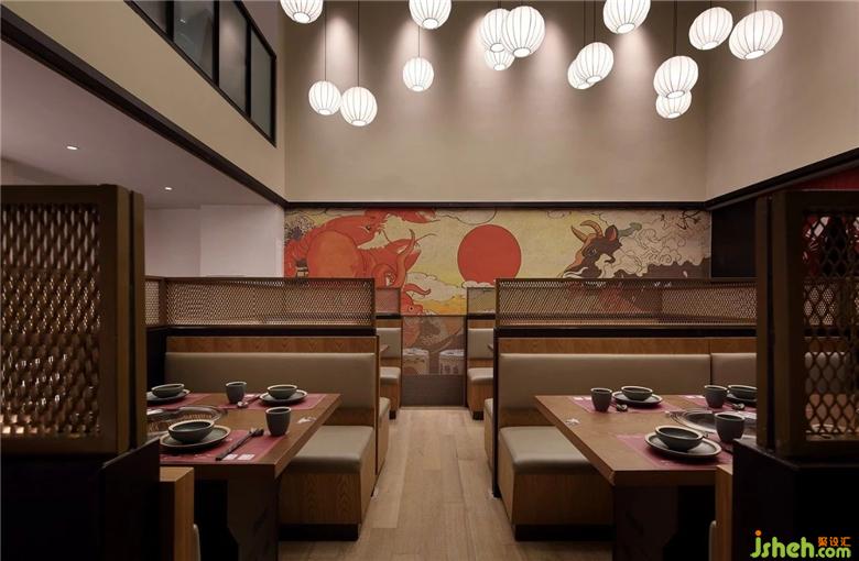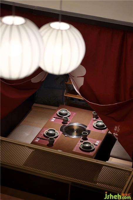 純色暖簾輕輕飄動(dòng),日式酒具成隊(duì)排列,溫潤的竹子陣列環(huán)繞,還有墻上的日式插畫,點(diǎn)亮空間的竹編燈籠等;