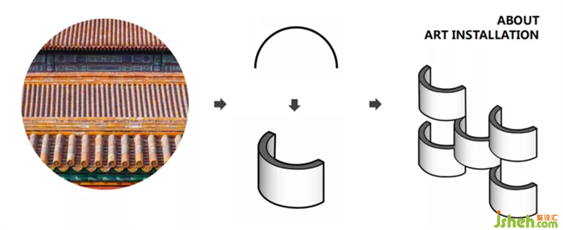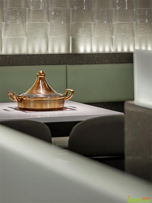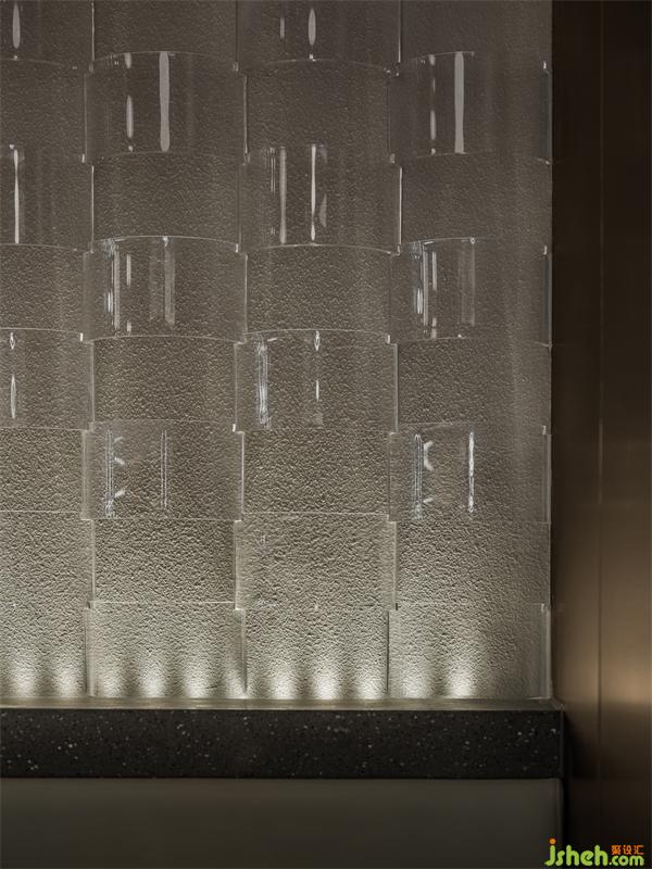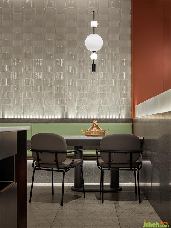 另一面墻,青瓦衍生的符號(hào)為裝飾,將古建筑的肌理浸潤空間,突出本案所表達(dá)的味蕾之城的藝術(shù)美感。