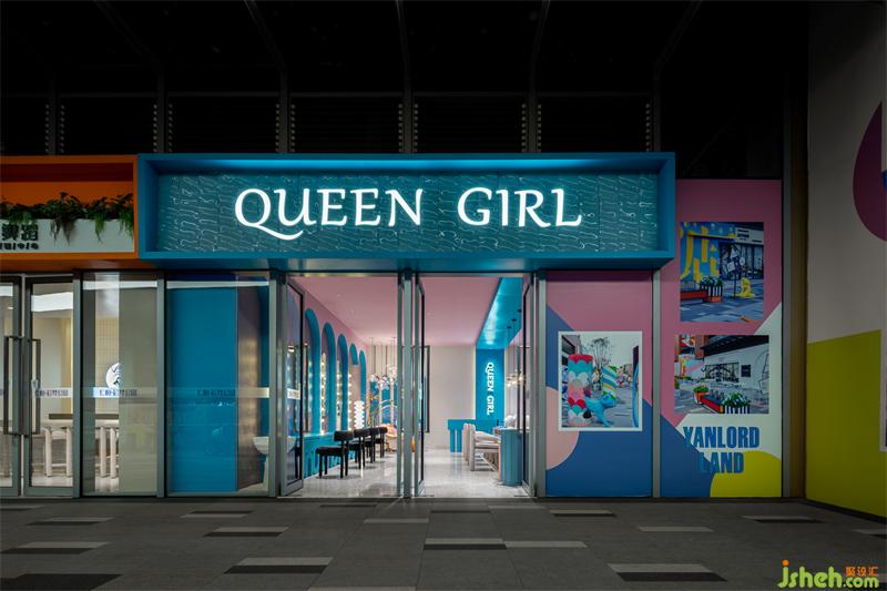QUEEN GIRL與Flower June只一室之隔。QUEEN GIRL美甲區(qū)刪繁就簡,藍色和粉色以大面積體塊,碰撞出領(lǐng)異標新的火花。