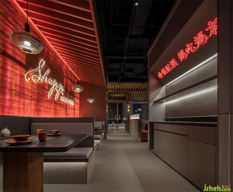 智者樂(lè)水,水以其靈動(dòng),引出俠客行走之江湖;小酒館設(shè)計(jì)以其躍動(dòng)之姿,呼應(yīng)小酒館里酒水之甘。俠客入座,咕咕豪飲,酣暢淋漓,陶然忘機(jī)。