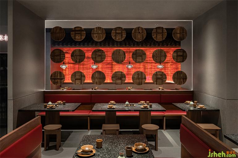 火生土,火與夯土也從火爐而來,暗涌之火,熱烈而激情,升騰于夯土之上,小酒館設計由動態(tài)火紋燈模擬,豐富表現(xiàn)形式的同時詮釋出動靜結合、自成一體的空間印記。
