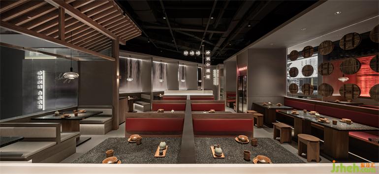小酒館設計又以金木水火土五行元素為基礎的材質應用配比,品牌IP和品牌超級符號的打造,實現(xiàn)俠氣充盈、開合有度,渾然一體沉浸式場景餐廳空間。水木相調(diào),火土并濟,孜孜以求文化傳承的同時,處處呼應著自然平衡的智慧。