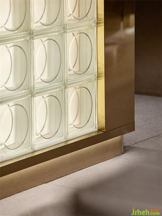 淺金色雙層圓孔玻璃磚賦予場景呼吸感