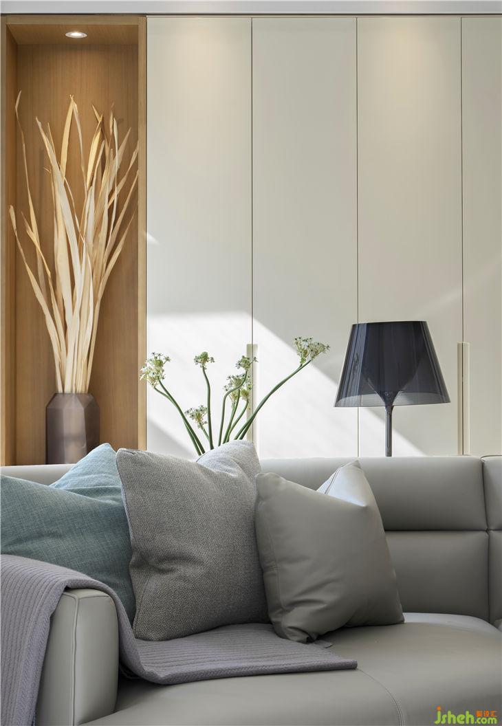 餐廳左側(cè)是從地下車庫進來的入戶門,為了維持整個空間的簡潔,入戶門做成了隱形門。餐邊柜上的插花植物就是院子里折來的,經(jīng)濟、方便四時常有,卻非常的惹人注目,筆者大愛。