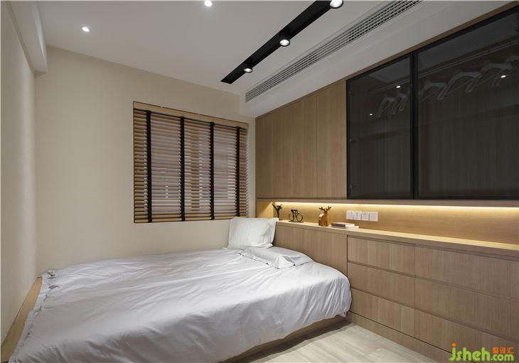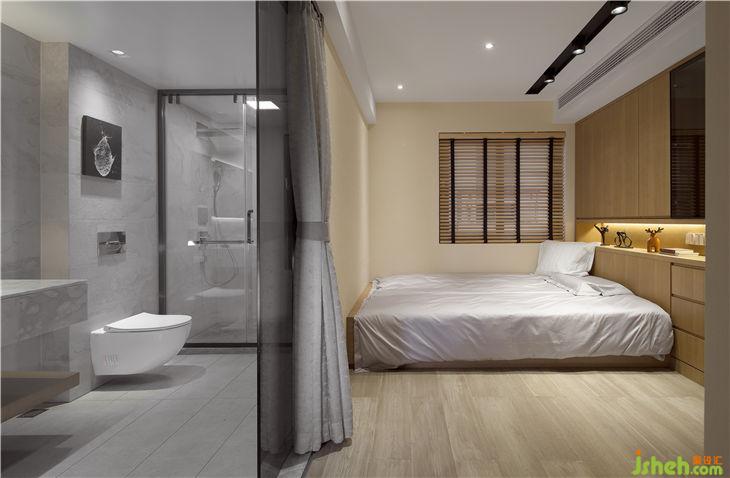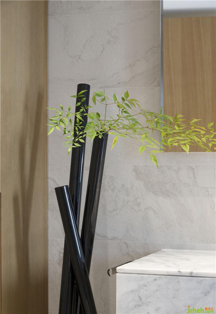 衛(wèi)生間的堵頭設(shè)置了一面墻的大衣柜,原木色和米白色之間是院子里折來的枝條,江南不在窗外也不在三月,就在此時。