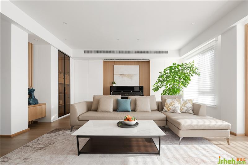 業(yè)主信佛,所以設(shè)置了玻璃柜門的佛龕,沙發(fā)背后是鋼琴區(qū),所有的公共活動(dòng)均在客廳得到合理錯(cuò)落的安排。