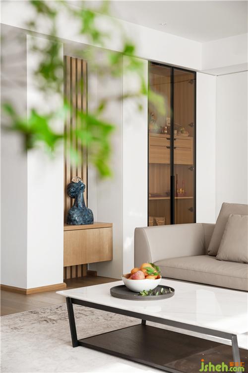 入戶玄關(guān)半遮蔽提供了一定的私密性,同時(shí)兼顧光線的引入。