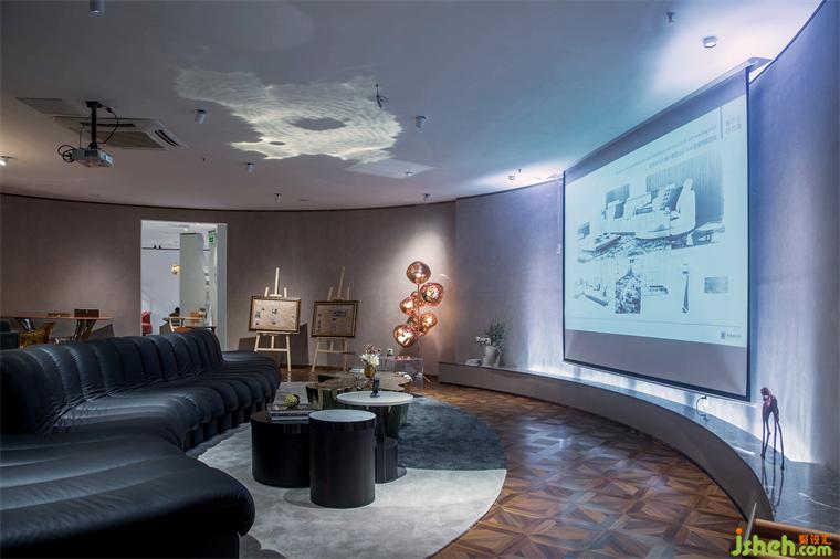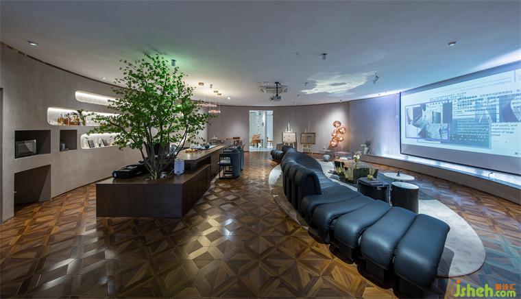 最后呈現(xiàn)的選板展示區(qū)域為客戶提供自由探索的可能,裝修設(shè)計創(chuàng)建了選板桌區(qū)域,并輔以木制陳列柜,展示豐富的高品質(zhì)原料。為呈現(xiàn)與會談空間不一樣的感覺,設(shè)計師在軟裝陳列上引入夸張變化的飾物,以及充滿視覺張力的藝術(shù)畫作,打造啟迪靈感的創(chuàng)意之所。