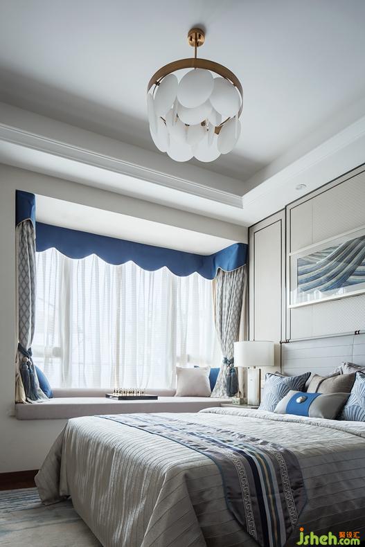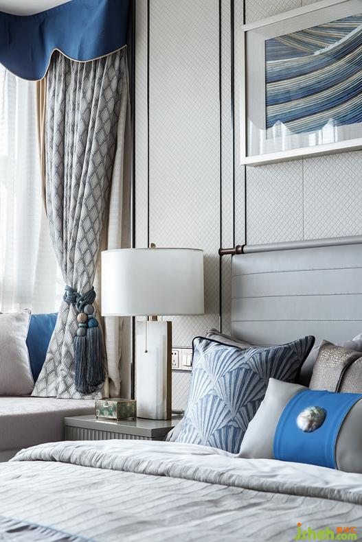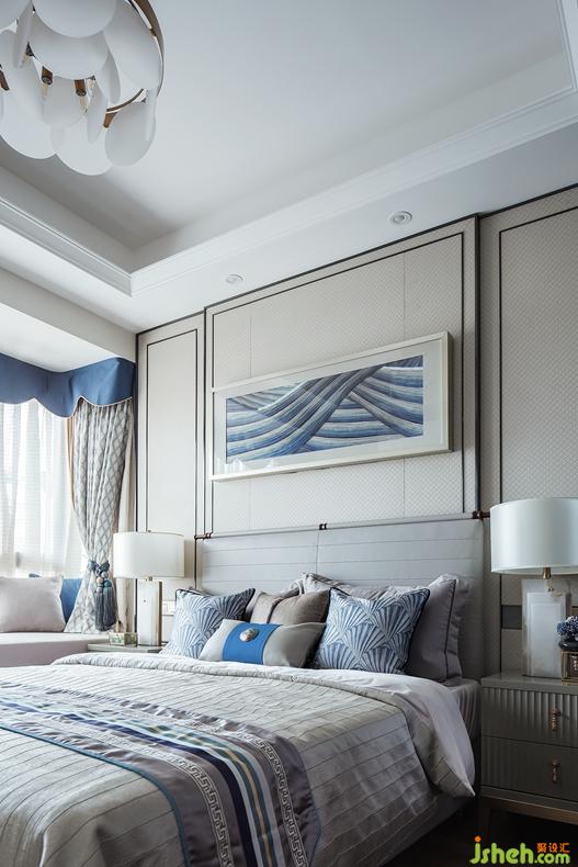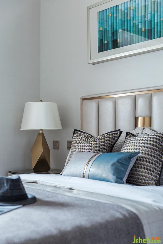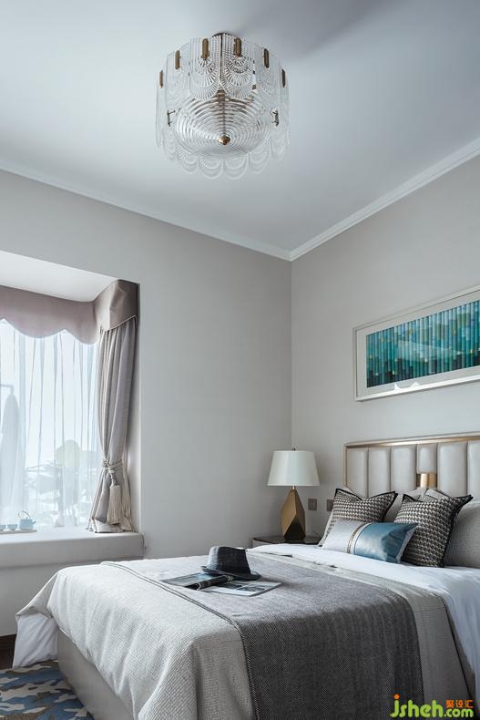 長(zhǎng)輩房的設(shè)計(jì)選用淺亞麻色、湖藍(lán)相對(duì)柔和的色調(diào),契合老人家舒愜享老的生活心態(tài)。舒適親膚的床品、精致的藝術(shù)飾件、甘甜芬芳的插花,營(yíng)造親和淳樸、安享自身的生活氛圍。