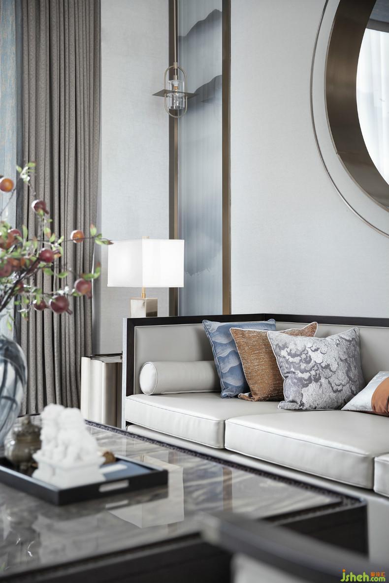 雅白座椅面料上的紋理在視覺上細(xì)微調(diào)和,搭配流水意象的線條地毯,詩性生動而靈韻萬千。室內(nèi)設(shè)計師家具中的線條與空間完美結(jié)合,搭配典雅精致的木飾面與金屬材質(zhì),更讓空間充滿質(zhì)感,相得益彰。
