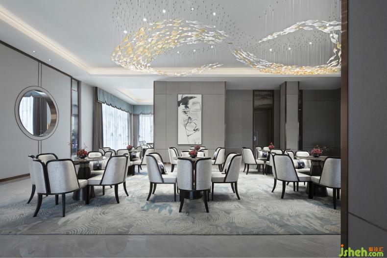 “S形”吊燈以自然為背景,清朗飄逸,有序地排列在空間,呈現(xiàn)出流動(dòng)的優(yōu)雅姿態(tài),極簡(jiǎn)線條、干凈的色彩、形式與用材素雅卻又風(fēng)雅自成,似翻動(dòng)澄澈的水光,靜景與動(dòng)景互相映照,構(gòu)成一幅綺麗的畫面。