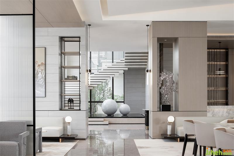 光影交織雕琢出面墻的體積感,未見大張旗鼓的沖擊,而現(xiàn)自然閑適的交融。此時,陽光微淡,南寧售樓處設(shè)計寧靜安然,若隱若現(xiàn)的縫隙襯顯出磚面的光潔本色,素調(diào)細(xì)微變化,詩意與現(xiàn)代在這里和諧共生。