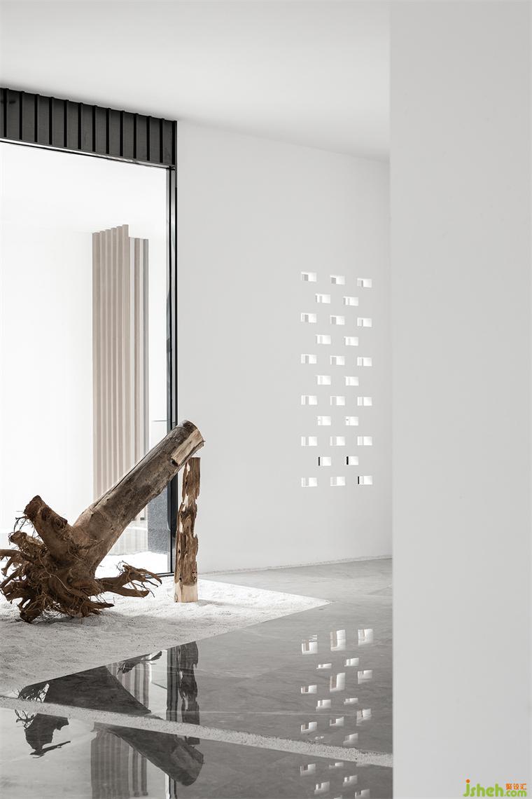 橫向延展的木質(zhì)線條,主導(dǎo)空間走向,為每一停駐的景致增添決定性指引。柔和而深淺錯(cuò)落的自然色彩,在白、黑、灰的映襯中更顯通透,時(shí)光是宇宙最神秘的工匠,在此天賜靈物上,一筆一畫雕刻出歲月走過的印跡,博物館設(shè)計(jì)傷痛,愈合,沉寂,繁盛,皆展露無疑,在圍合意境的維度里,為人、器物、光影、線條、色彩注入契合氣韻,共同恪守著神秘的平衡法則。