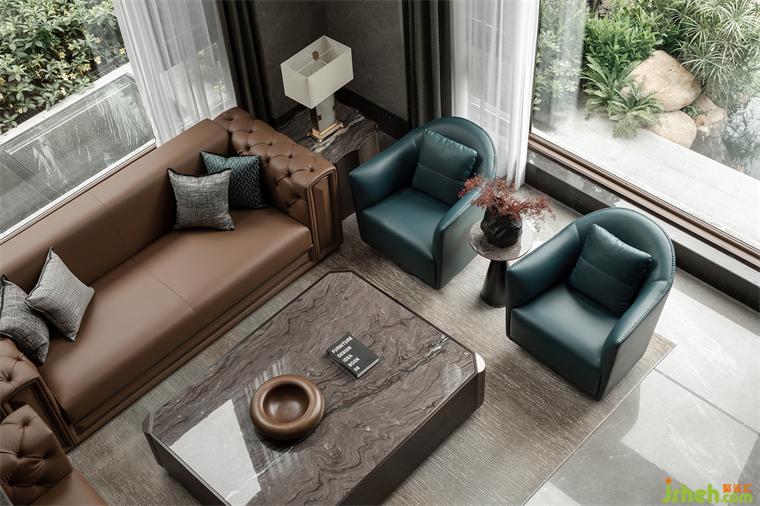 不囿于某種特定風(fēng)格,花園別墅裝修設(shè)計(jì)以現(xiàn)代之形架構(gòu)空間的非凡格調(diào),生活品質(zhì)在席坐之間升華。沉穩(wěn)如墨綠,溫暖如深褐。沙發(fā)、茶幾恰到好處的弧度圓潤(rùn)流暢,搭配棱角正方的雅白地?zé)簟?