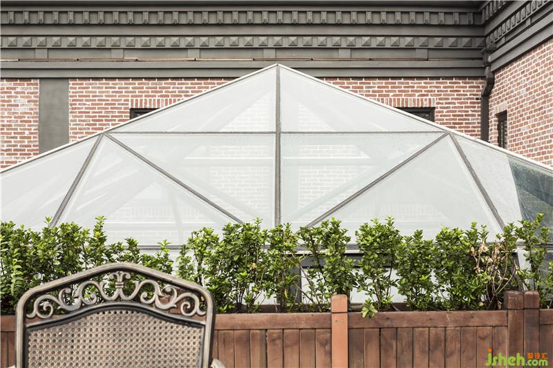 花園的上方為酒吧區(qū)域,露天區(qū)域提供了極好的視野,金字塔的造型與傳統(tǒng)紅磚相映成趣,同時(shí),這也成為設(shè)計(jì)師最傾心的一景。