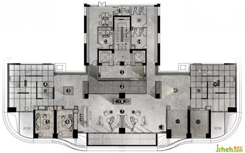 空間分為,過道區(qū)、展示區(qū)、講座品鑒區(qū)、洽談區(qū)及VIP室五個(gè)部分組成。設(shè)計(jì)公司