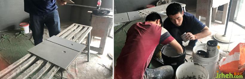 工人師傅正在對水紋清水板進行比對和校色處理,讓其自然的紋理和色澤得以完全的展現(xiàn)。