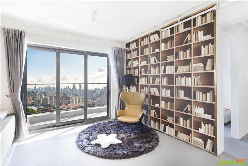 弧線形皮革沙發(fā)沙,書籍,隨著午后的斜陽,讓這里變得更加詩意。圓形毛毯,星星點(diǎn)綴其中,增添了空間的舒適度,也將這塊區(qū)域單獨(dú)劃分出來,在整體格局中,即獨(dú)立又保持統(tǒng)一。室內(nèi)設(shè)計(jì)師
