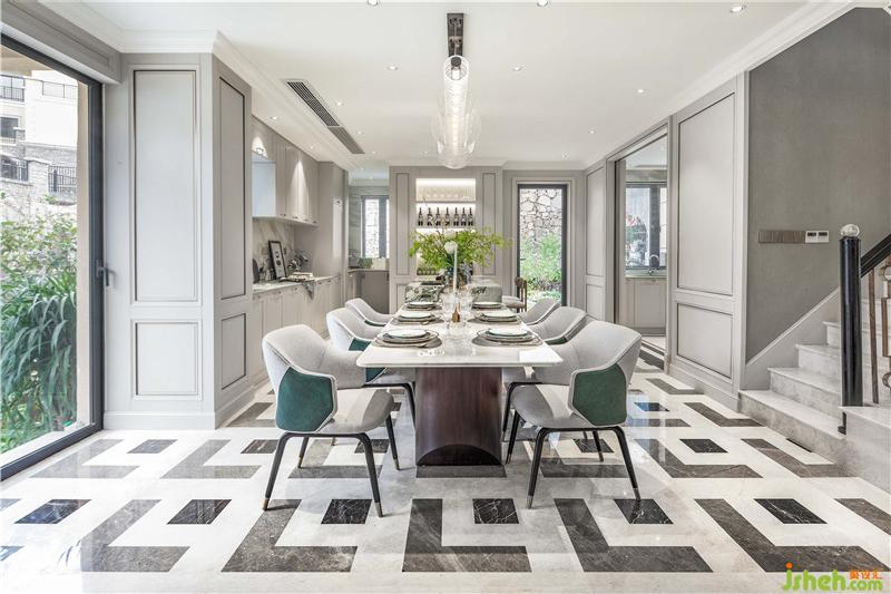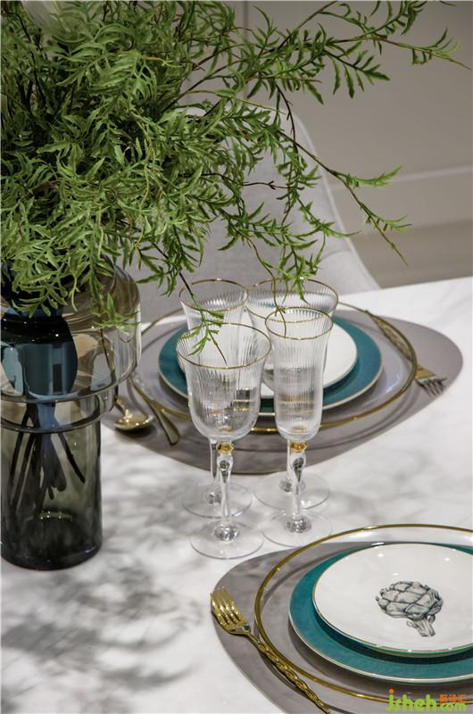 生活的儀式感從餐廳開始,簡潔又不失設計感的餐椅,與饒有趣味的餐具組合,時尚精致的圓豎玻璃燈,讓就餐體驗變得雅致而又有趣味。