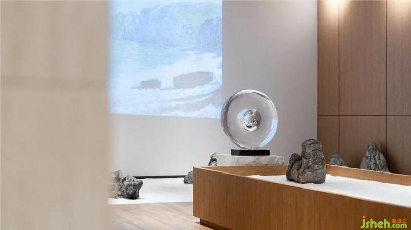 水晶打造而成的圓盤雕塑,以水為靈感,你能通過折射看到戶外的海景,亦能在其中看到自己,看到未來。
