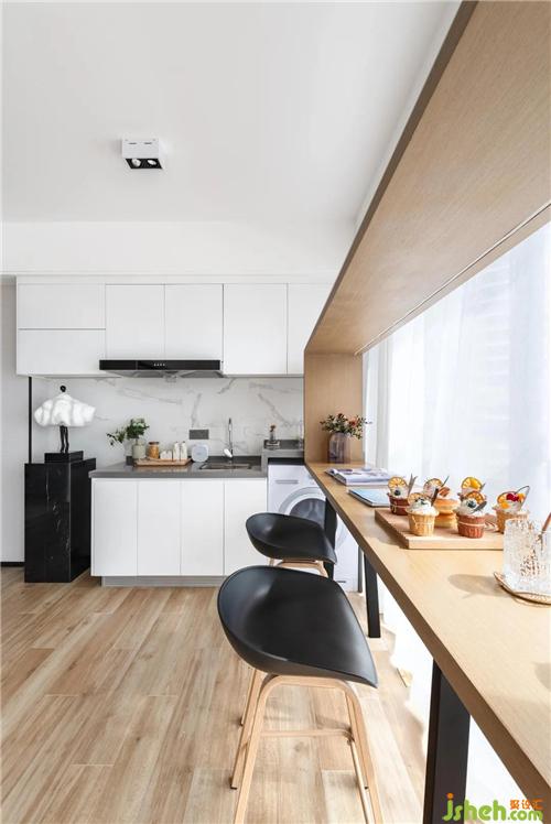沙·嶼的空間人物定位是好友歡聚,一片海景填滿的8米大橫廳,為空間灑落大面積的光影,抬頭便可觀云卷云舒,遠(yuǎn)眺即獲蔚藍(lán)大海。